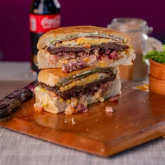 Carne seca desfiada no capricho, queijo derretido, ovo frito, milho, tomate e alface dentro do clássico pão de xis. Ketchup, mostarda e maionese artesanal garantem o sabor que respeita a tradição e conquista qualquer fome.